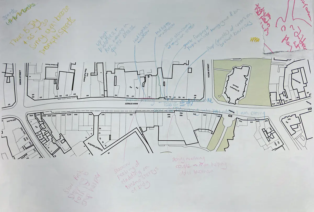 These visuals show how the pavilions could sit in the High Street, starting at the market place, past CoLab Dudley’s base, and ending up at Top Church. We wanted to show how people would be able to interact with these different spaces and navigate between them.