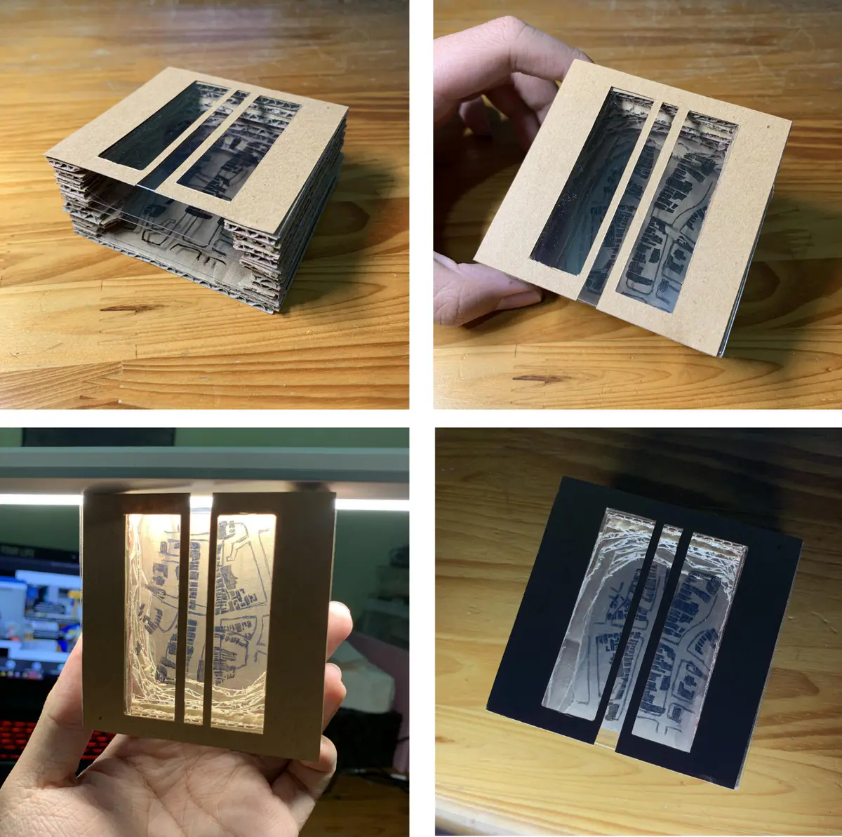 This second model uses the Shou Sugi Ban method of charring timber to waterproof it. In this case however it represents the embodied carbon and pollution within the highstreet as it exists now. The simplicity and repetition is also used to symbolise the plain nature of the highstreet with only a few materials exhibited, mainly brick & concrete. Once burnt the timber forms were brushed with wire wool to reveal the natural grain of the wood, a visual representation of degradation of layers of buildings that are built poorly or not constructed to last longer than a generation.
