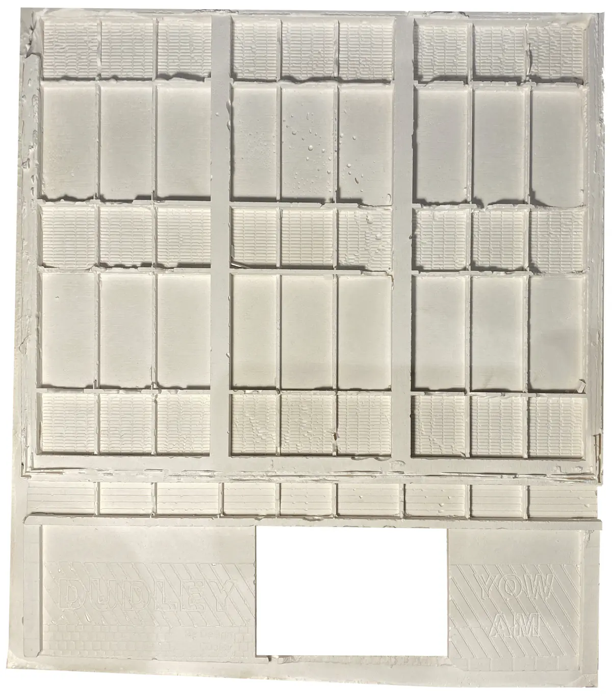 The lichen covered model looks towards a future in Dudley that is rich in texture, colour, nature and oxygen. Natural materials promote natural growth, and textures such as rough sawn timber and stone are the prefect hosts for lichen. All new buildings in Dudley would benefit massively from following a fabric first approach and adopt the use of sustainable and recycled building materials along with systems that use minimal energy.