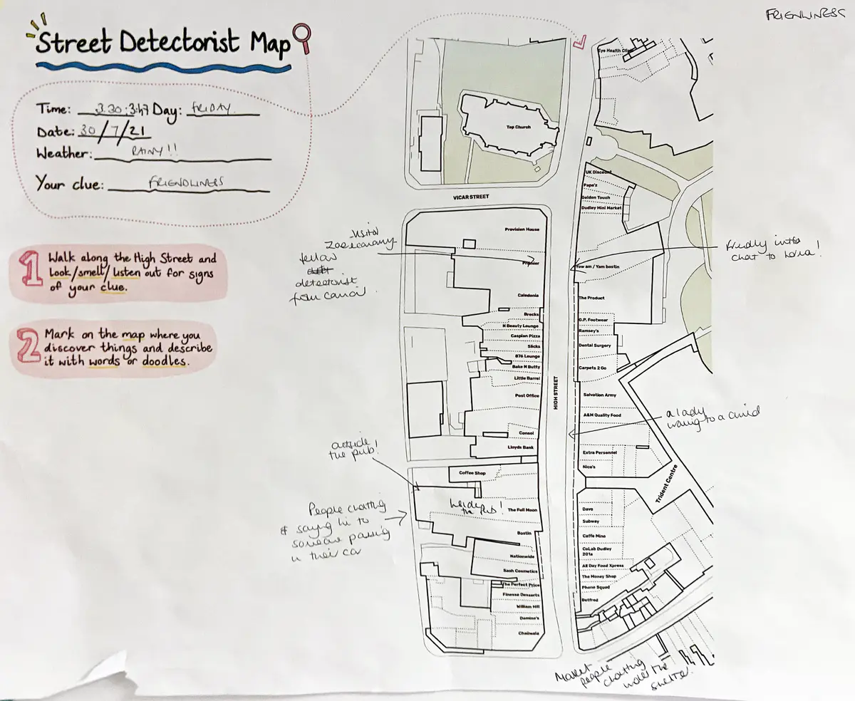My gift focused on the issue that I found most prevalent in my research, which was the lack of nightlife and social entertainment on Dudley High Street. I created an abstract storyboard that highlights the gap on the High Street. This model can be packed away and used at different events. It can also be used as a puppet show. People can add their own contributions to the High Street. The storyboard was made out of recycled materials. This puts emphasis on looking after our environment.