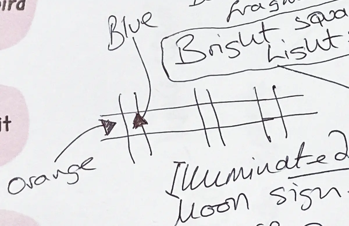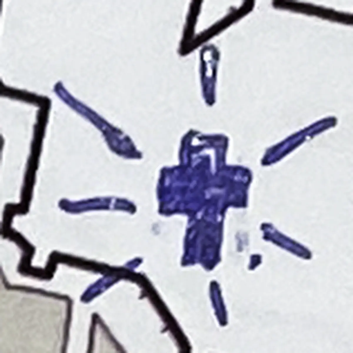 The blue foam pieces can be viewed as points or highlights of the journey, or they can represent different ways of getting to, and from the centre, suggesting that the journey doesn’t end with the destination.